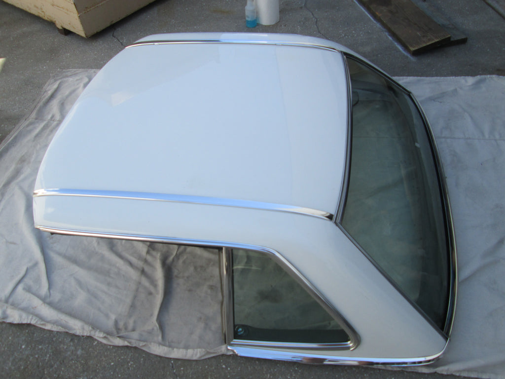 Mercedes R107 removable hard top. Please see pictures and make sure this is the piece you are looking for. This is a used part and does show some small signs of age. A few small dings and dents in some of the trim and one seal has some issues. Window is in good shape just needs some cleaning. Please contact us for shipping options. DOES NOT COME WITH STAND