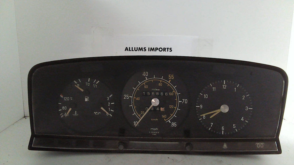 Mercedes W123 instrument cluster. The part number is 1235426301. Please make sure this matches yours. We do not guarantee the odometer or clock to be functioning on these clusters or the light bulbs