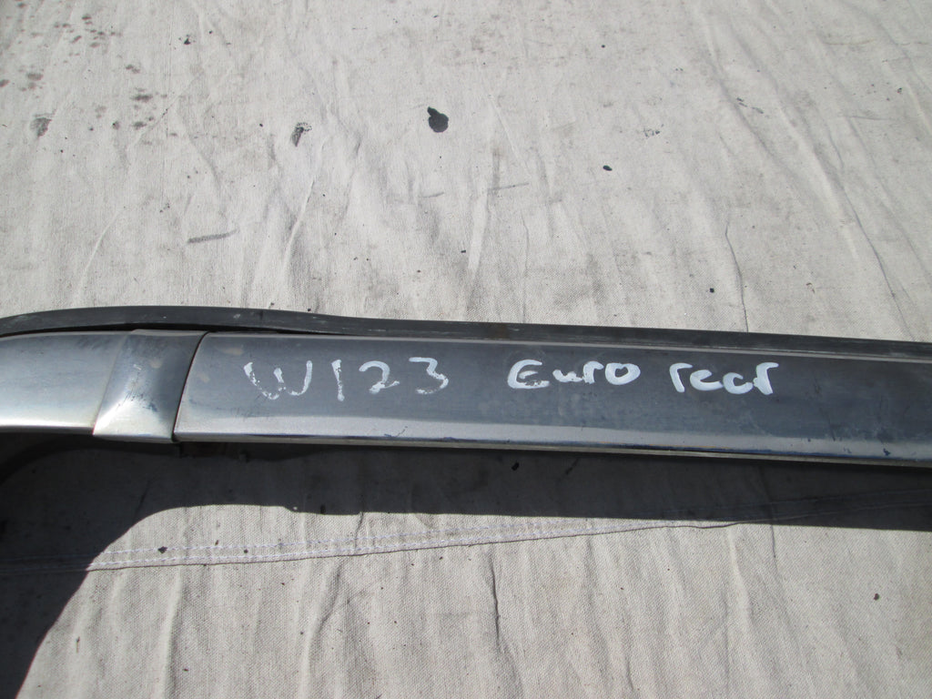 Mercedes W123 euro rear bumper. Please look over pictures for further details, there are different styles. Please make sure it matches yours. We do not guarantee the condition of any paint or chrome. Please contact us for more shipping details.