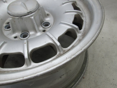 Mercedes W108 wheel. Please make sure this matches yours. We try to picture any cosmetic flaws but its hard to see everything in the pictures so please be aware these wheel do have some cosmetic flaws to them unless stated. See pictures for further info