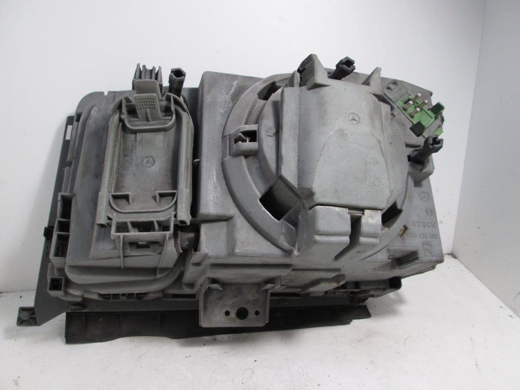 Mercedes W124 right headlight with wiper. The part number is 1248205661. Please make sure this matches yours. These are used light and may show signs of wear and age. We try to point out every major flaw but can not always show each and every imperfection.