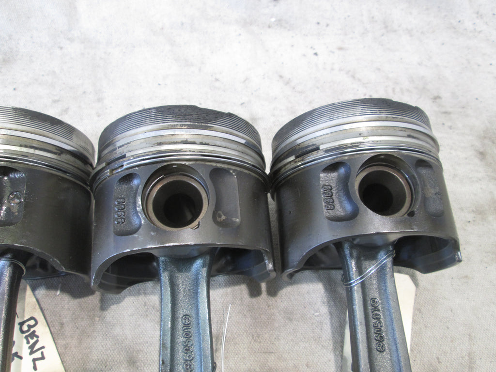 Mercedes OM603 piston and rod set. These were removed from a S350. All of them are in used shape and removed from the same engine. We do not guarantee any rings. Please make sure this matches yours. Please see pictures for further info