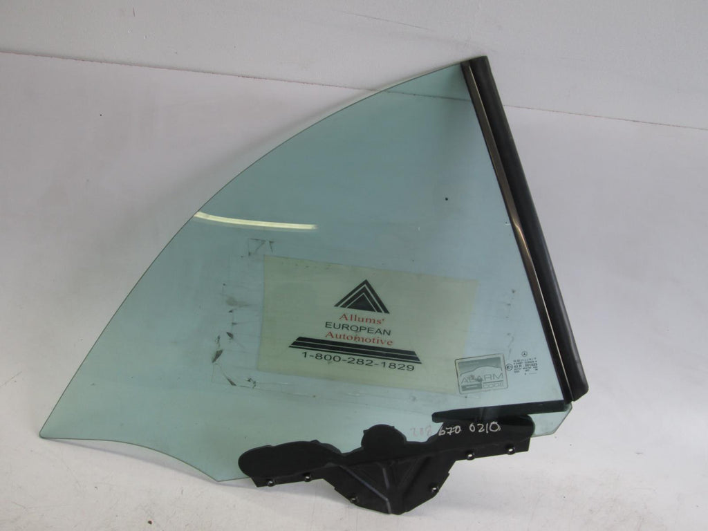 Mercedes W208 left rear glass. The image is a stock picture of the item. We have many windows in stock and the one pictured may or may not be the one you receive. Windows may have tint, writing, seals, trim, or stickers that may need to be removed once you receive the window.