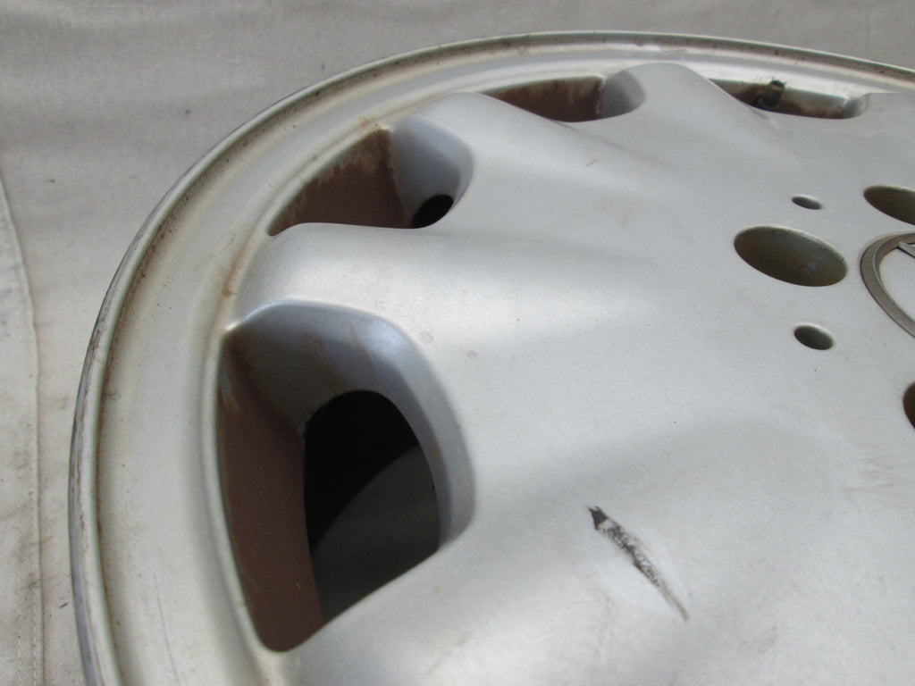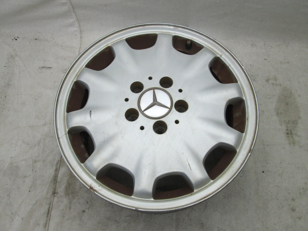 Mercedes W210 E class wheel. Silver paint is a little dull. The part number is 2104010602. Please make sure this matches yours. We try to picture any cosmetic flaws but its hard to see everything in the pictures so please be aware these wheel do have some cosmetic flaws to them unless stated. See pictures for further info
