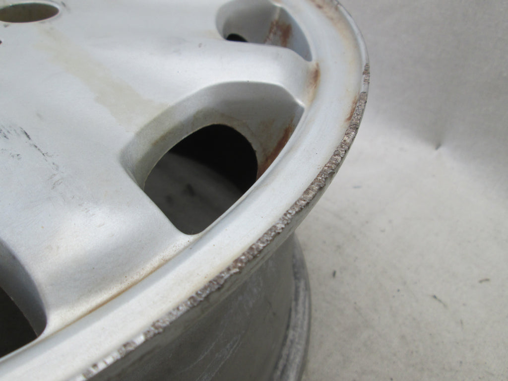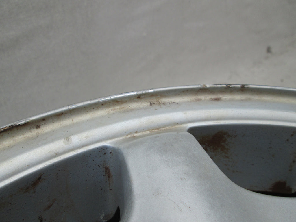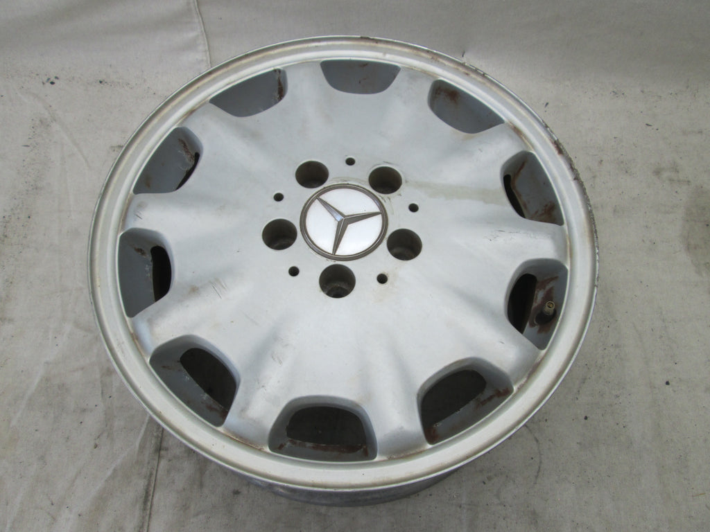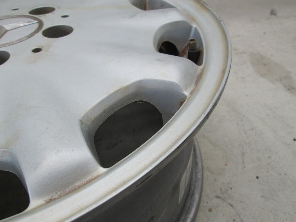 Mercedes W210 E class wheel. Silver paint is a little dull. The part number is 2104010602. Please make sure this matches yours. We try to picture any cosmetic flaws but its hard to see everything in the pictures so please be aware these wheel do have some cosmetic flaws to them unless stated. See pictures for further info