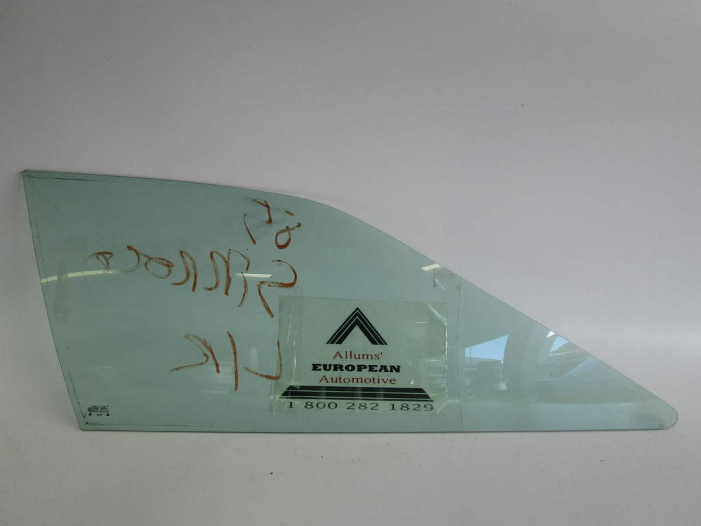 VW Scirocco left rear quarter glass. The image is a stock picture of the item. We have many windows in stock and the one pictured may or may not be the one you receive. Windows may have tint, writing, seals, trim, or stickers that may need to be removed once you receive the window.